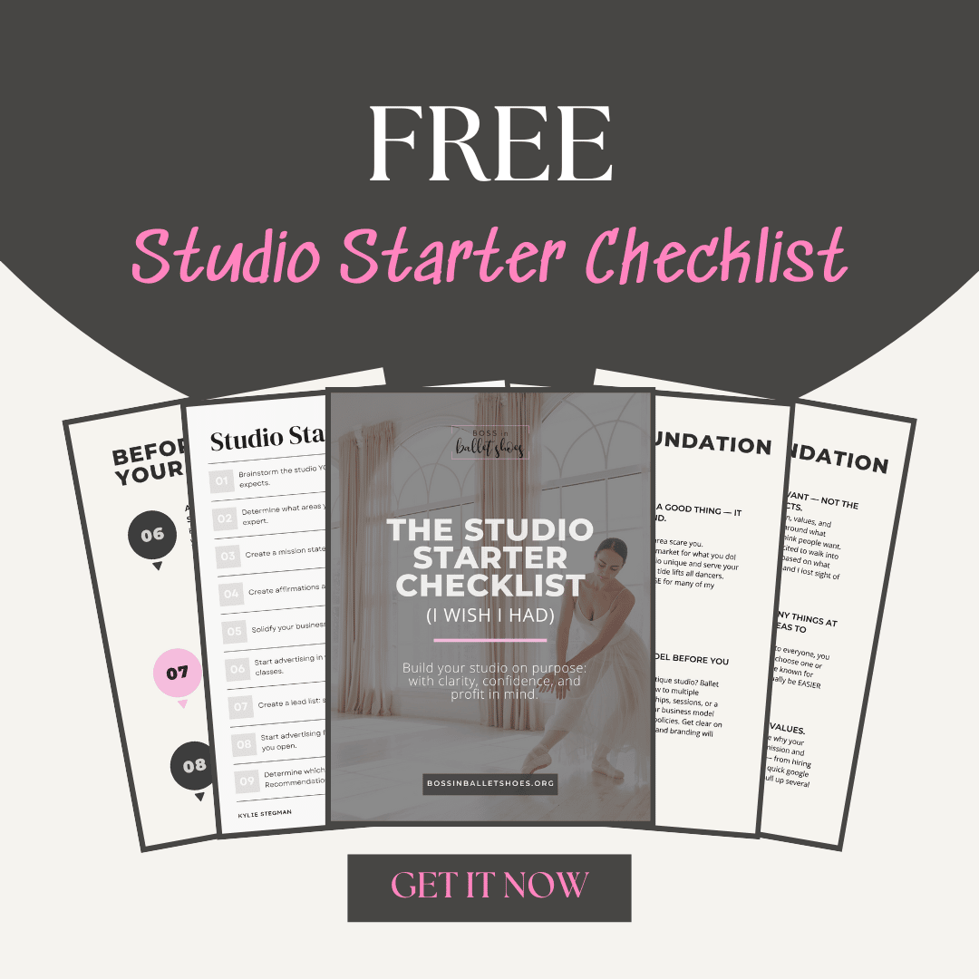 Grab the free Studio Starter Checklist and avoid the mistakes most new studio owners make, including me when I started my studio 13 years ago!